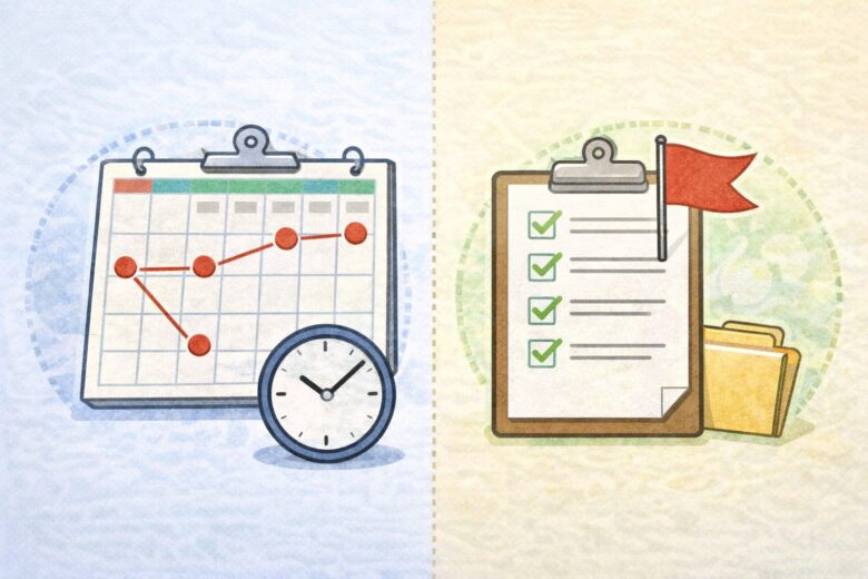 スケジュールという流れの中には、必ず重要なマイルストーンがあります。この2つを意識的に使い分けるだけで、仕事の精度と信頼性は大きく変わります。
