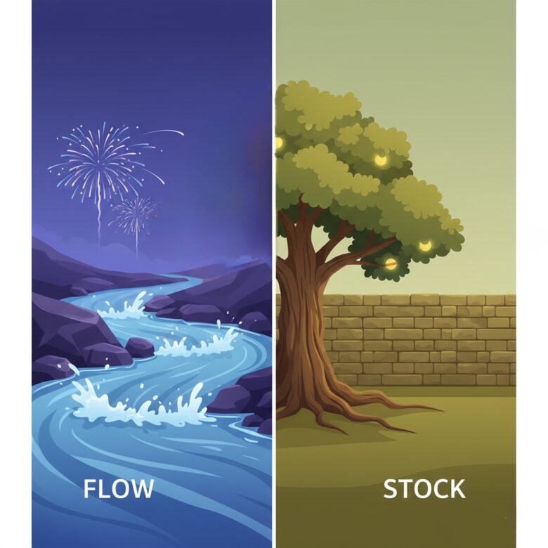 どれだけ頑張っても「ゼロからのスタート」を繰り返している感覚に陥り、本当の意味での資産が残りづらいのが、フロー型の最大の弱点です。