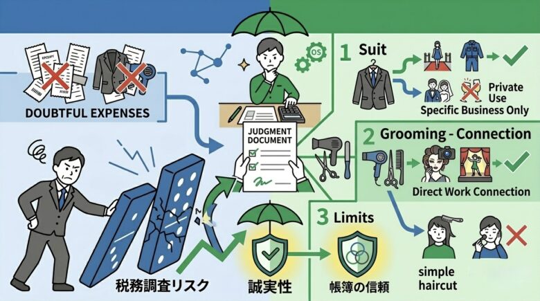 スーツや美容代を無理に計上すると、税務調査では次のように見られる可能性があります。